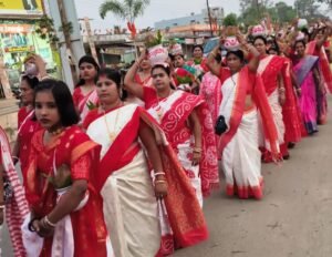 कलश यात्रा में शामिल महिलाएं पारंपरिक बंगाली साड़ी, गहनों और श्रृंगार में सजी-धजी नजर आईं, जो इस आयोजन की सबसे खास झलक रही। उनके चेहरे पर भक्ति और उत्साह साफ झलक रहा था। युवतियों और बच्चों ने भी बढ़-चढ़कर भाग लिया, जिससे यह आयोजन और अधिक जीवंत हो गया।