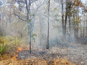 पखांजुर/संगम, 22 मार्च (सुब्रत कुमेटी)। कोयलीबेड़ा ब्लॉक अंतर्गत ग्राम बारकोट के जंगल में लगी भीषण आग। देखते ही देखते आग ने विकराल रूप धारण कर लिया और बड़े क्षेत्र में फैली वन संपदा को नुकसान पहुंचने की आशंका गहराने लगी। स्थानीय ग्रामीणों के अनुसार, आग लगने के बाद काफी समय तक वन विभाग की ओर से कोई त्वरित और प्रभावी कार्रवाई नहीं की गई। जिससे स्थिति और बिगड़ती चली गई। बताया जा रहा है कि जंगल में फैले सूखे पत्तों और झाड़ियों के कारण आग तेजी से फैलती गई, वहीं तेज हवाओं ने आग को और भड़काने का काम किया। हालात इतने गंभीर हो गए कि ग्रामीणों को अपने स्तर पर ही आग बुझाने के प्रयास करने पड़े, लेकिन संसाधनों की कमी के चलते उन्हें भारी परेशानियों का सामना करना पड़ा।