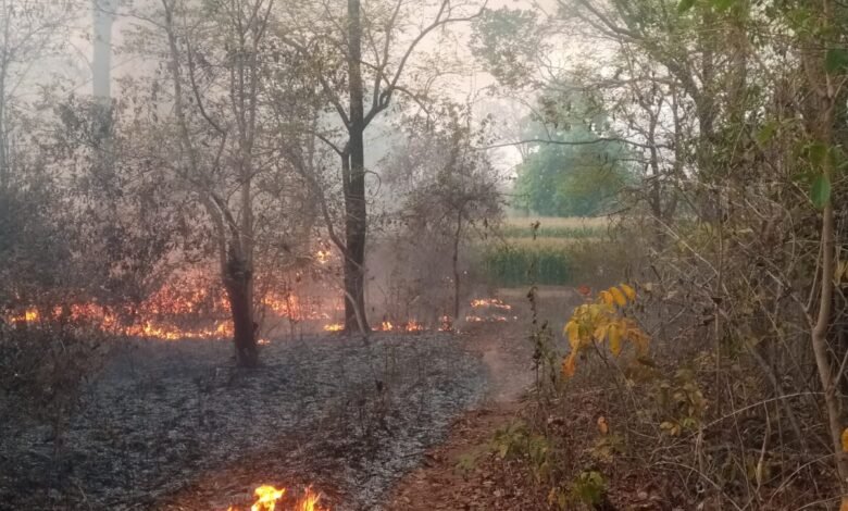 जंगल में लगी आग से मक्का फसल पर संकट, किसान ने सूझबूझ से बचाई फसल