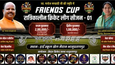 भानुप्रतापपुर/ स्वर्गीय मनोज मांडवी की स्मृति में आयोजित “फ्रेंड्स कप” क्रिकेट टूर्नामेंट का प्लेयर ऑक्शन 29 जनवरी को।